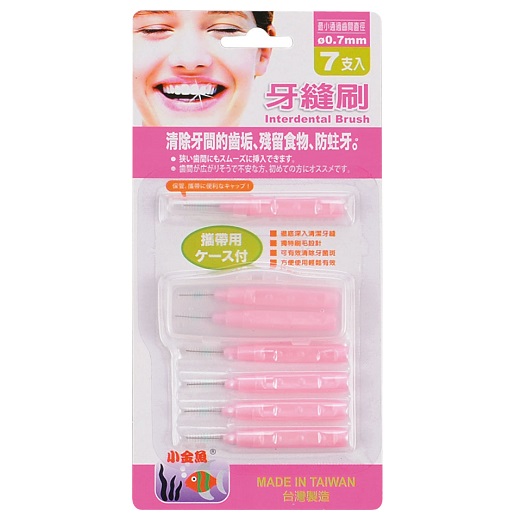 Material: Brush: Stainless steel wire、Nylon hair Handle cover: PP plastic Size: Stainless shaft diameter 0.7mm、Brush bristle diameter 2.5mm Usage: Clean teeth interdental
